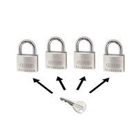 Gelijksluitend hangslot, speciaal voor buiten, met robuust karakter en modern design. Paracentrische sleutel voor betere inbraakbeveiliging. Gemaakt van een lichte legering die een optimale bescherming biedt tegen corrosie. Gelijksluitend betekent dat alle hangsloten in een set identieke sleutels hebben. De meegeleverde sleutels openen alle hangsloten van de desbetreffende set. NANO Protect-technologie voor een zeer hoge bescherming tegen corrosie. Dubbele kogelvergrendeling van de beugel: rechts en links. Verchroomde cilinderrotors. Gebruik mogelijk in zilte omgeving.