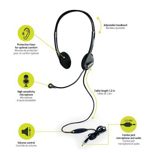 Headset met snoer, Selectie telewerken: ja, Gebruiksfrequentie: 5 u, Aansluiting: Jack, Type nr.: 901603
