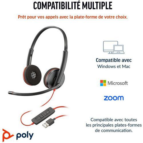 | Productnaam | Headset mono monoauraal bulk USB Blackwire C3220, Microfoon model: Headset-microfoon |