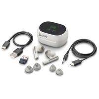 - De basis voor de Voyager 4300 UC-headset zorgt voor eenvoudig opladen en veilig opbergen.