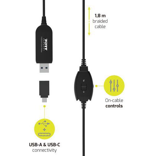 | Productnaam | Headset voor op kantoor met microfoon stereo-usb, Selectie telewerken: ja, Aansluiting: Koptelefoon |