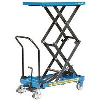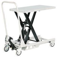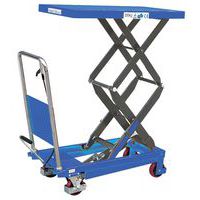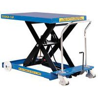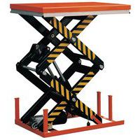 - Handmatige heftafel met dubbele schaar. Een voordelige tafel voor het heffen, laten zakken en transporteren van lasten tot 350 kg. Ideaal voor het verplaatsen en op hoogte plaatsen van zware lasten. Deze heftafel is licht, neemt weinig ruimte in, is eenvoudig te transporteren en vereist slechts weinig onderhoud. Een onmisbaar hulpmiddel om de productiviteit te optimaliseren en tegelijkertijd de gezondheid van werknemers te beschermen. Uitgerust met 2 vaste wielen en 2 zwenkwielen van polyurethaan.