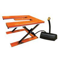 - Heffen van het plateau met bediening van een pedaal en neerlaten met een handmatige hendel.