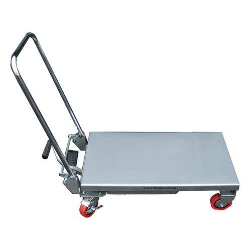 | Productnaam | Heftafel handbediend, Max. belasting: 100 kg, Max. hoogte plateau: 265 mm, Min. hoogte plateau: 730 mm |