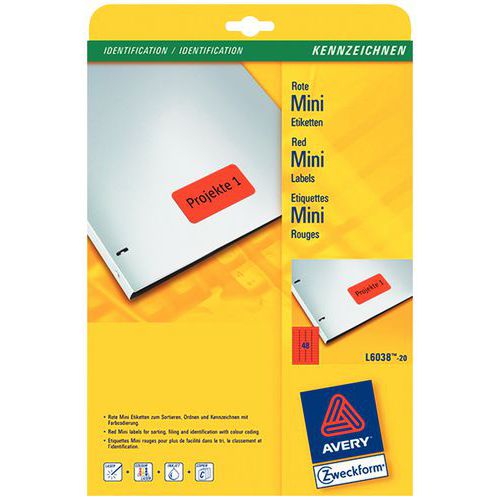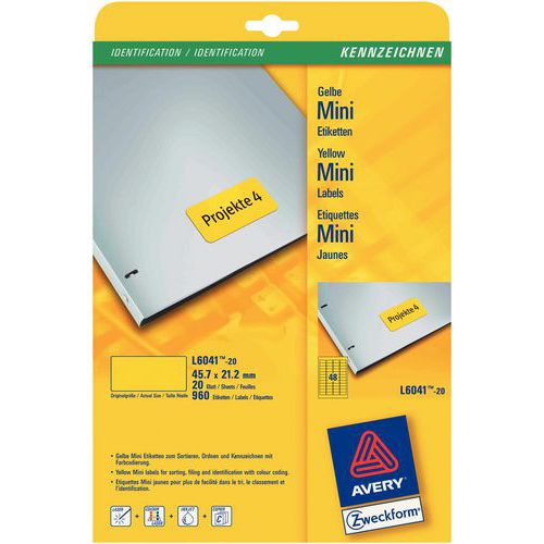 | Productnaam | Herplaatsbaar kleurenetiket Avery - Voor laser-, inkjetprinter, kopieerapparaat |