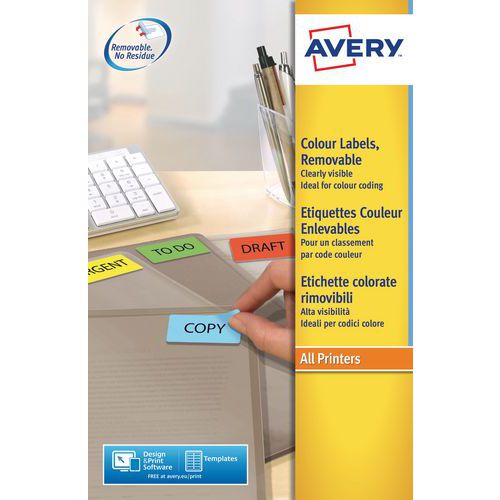 Herplaatsbaar kleurenetiket Avery - Voor laser-, inkjetprinter, kopieerapparaat