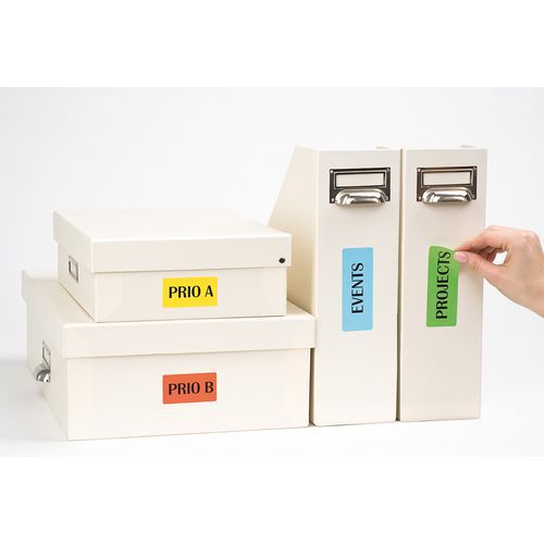 Gekleurd etiket voorgesneden voor een duidelijke en snelle identificatie. Te verwijderen zonder sporen achter te laten, hecht perfect zelfs na meerdere keren te zijn gebruikt. Geschikt voor alle types inkjet- en laserprinters en kopieermachines.