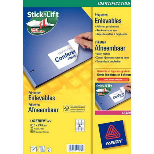 Herplaatsbaar wit etiket Avery - Voor laser-, inkjetprinter, kopieerapparaat