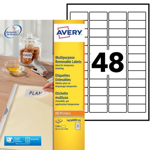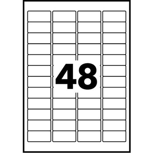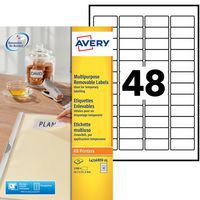 Herplaatsbaar wit etiket Avery, Aantal etiketten/vel: 48, Aantal etiketten: 1200, Lengte etiket: 45.7 mm