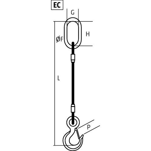 Hijsband van staalkabel met 1 streng - 1 enkele maas + haak + oog en veiligheidspal - Hefvermogen 250 tot 7200