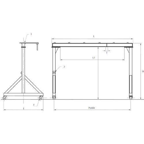 Hijsbrug voor de werkplaats, verplaatsbaar 1000 tot 5000kg - Huchez