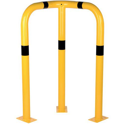 Beschermbeugel om hoeken van gebouwen of machines te beschermen tegen onjuiste manoeuvres van voertuigen. Goede zichtbaarheid dankzij de tweekleurige geel/zwarte kleur. Alleen geschikt voor binnengebruik. Bevestigingsmateriaal niet inbegrepen. TÜV-certificaat.