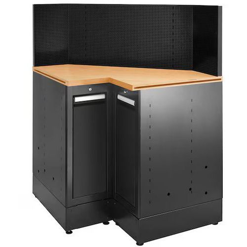 Hoekkast laag met 2 laden houten werkblad - Facom