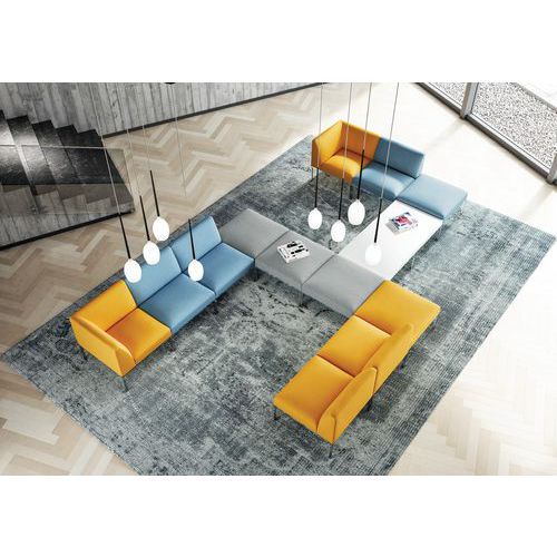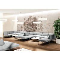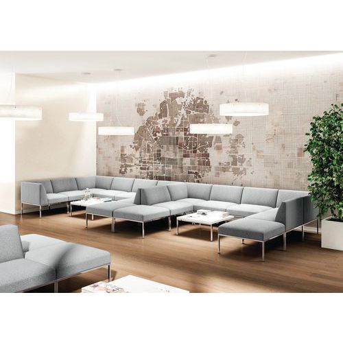 - Fauteuil of hoekmodule van stof met multiplex in beuken.