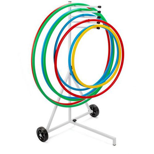 | Productnaam | Hoepelhouder verrijdbaar, Materiaal: Staal, Hoogte: 105 cm, Breedte: 50 cm, Lengte: 60 cm, Kleur: Wit/zwart |
