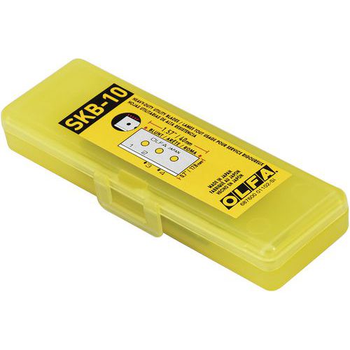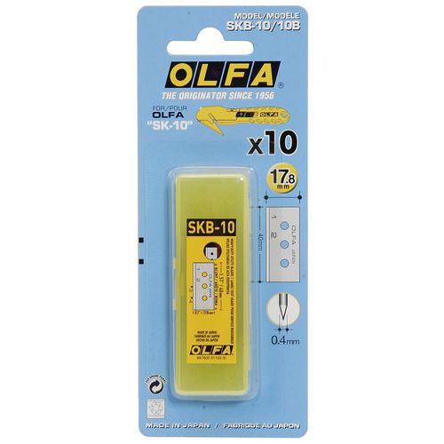 | Productnaam | Hoes met 10 afbreekmesjes, Materiaal: Staal, Mes breedte: 17.8 mm, Lengte mes: 40 mm, Mes dikte: 0.4 mm |
