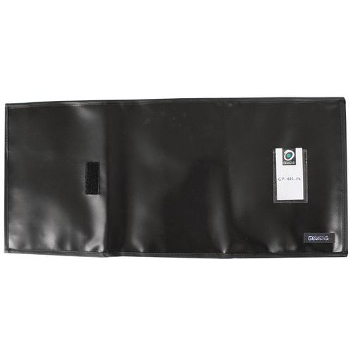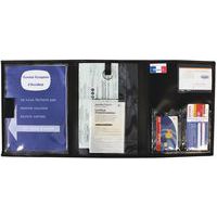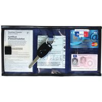 Hoes voor autosleutels en -papieren. 1 vak voor autopapieren (kentekenbewijs, groene kaart). 1 vak voor kaarten (tankpas, voertuigonderhoud….). 1 sleutelring. 1 etikethouder aan voorzijde (naam, voertuigregistratie….). Sluiting met klittenband en afwerking met rand.