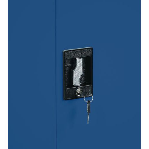 - Het ingebouwde cilinderslot wordt geleverd met twee sleutels.