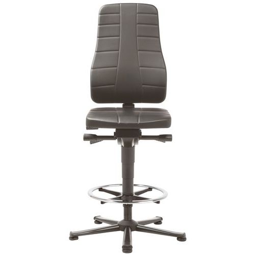 | Productnaam | Hoge, ergonomische werkplaatsstoel All-in-One, Type voet: Stoeldoppen, Zitting materiaal: Imitatieleer |