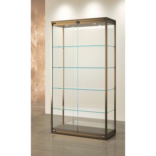 Vitrinekast hoog met ledverlichting, Onderstel kleur: Brons, Hoogte: 190 cm, Breedte: 95 cm, Diepte: 45 cm