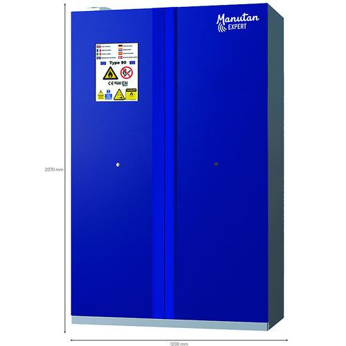 | Productnaam | Kast hoog voor opslag lithium-batterijen, Materiaal: Staal, Totale hoogte: 2070 mm, Totale breedte: 1200 mm |