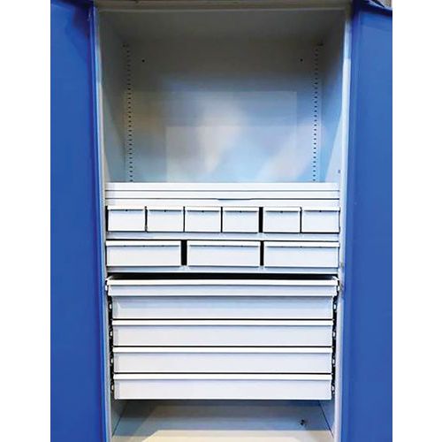 Hoge kast SF1 met laden, Max. belasting: 450 kg, Materiaal: Staal, Totale hoogte: 1950 mm, Aantal laden: 14