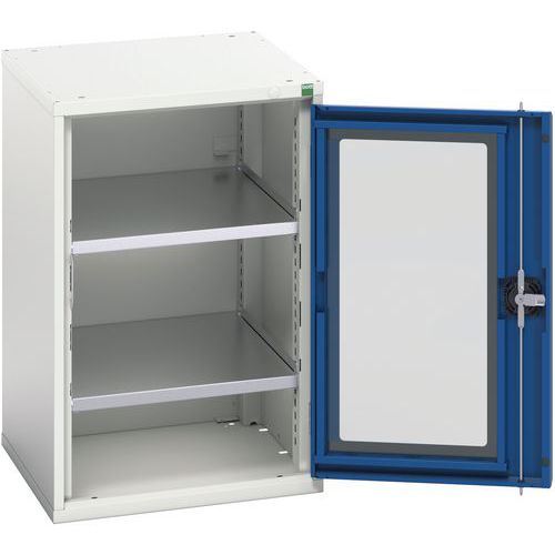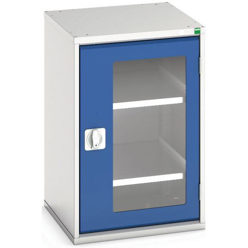 Kast Verso met transparante deuren en 2 legborden 525x550x800. Geleverd met een set van 2 sleutels. Gemaakt in het UK Max. belasting (kg) : 1000 Max. belasting per legbord (kg) : 75