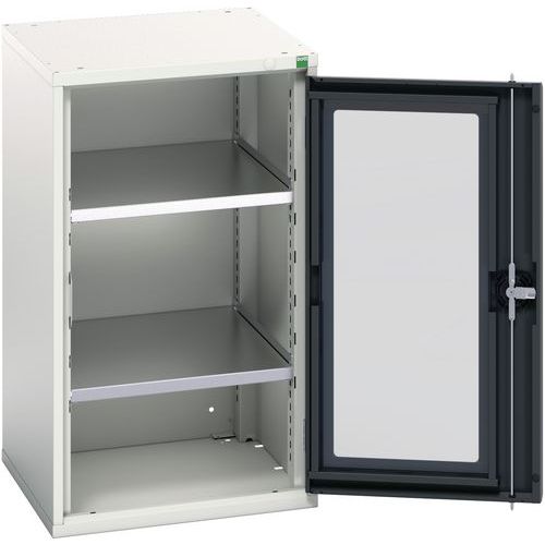 Hoge kast Verso 525x550x900mm met raamdeur en 2 legborden, Max. belasting: 1000 kg, Materiaal: Staal