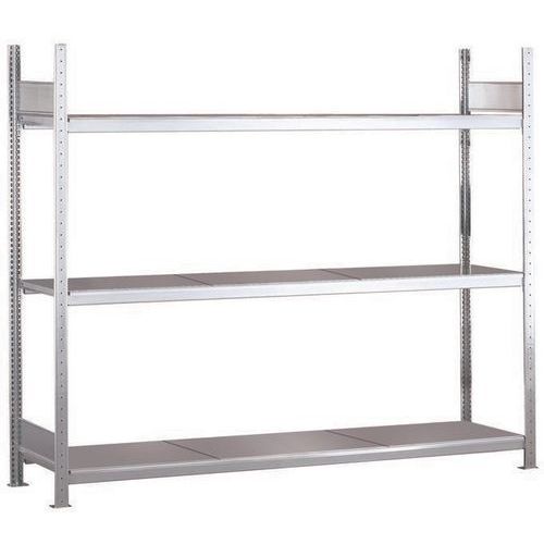 Stevige magazijnstelling, dicht plaatstaal. Stabiel zonder kruisschoor, toegankelijk van beide kanten. Perfect in combinatie met andere Easy-Fix stellingen. Hoge weerstand tegen corrosie dankzij afwerking van gegalvaniseerd staal.