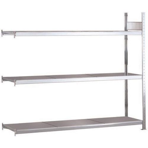 Stevige magazijnstelling, dicht plaatstaal. Stabiel zonder kruisschoor, toegankelijk van beide kanten. Perfect in combinatie met andere Easy-Fix stellingen. Hoge weerstand tegen corrosie dankzij afwerking van gegalvaniseerd staal.