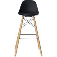 - Materiaal: zitting van polypropyleen en frame van gelakt massief hout met verbindingsstukken van zwart metaal.