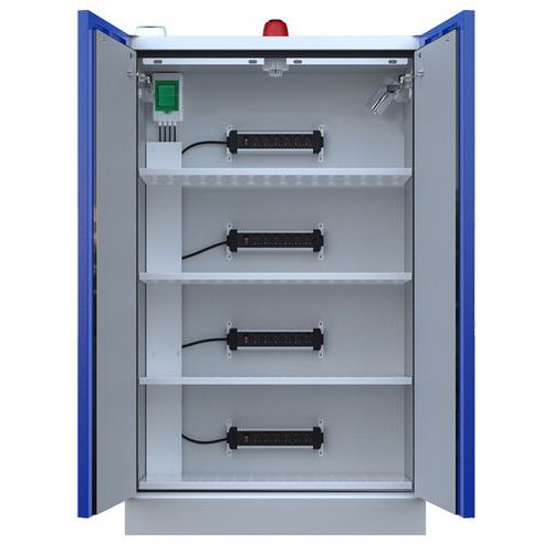 - Brandwerende veiligheidskast voor de opslag van lithium-ion-accu's.