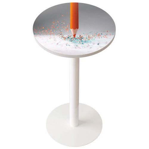 Hoge vergadertafel Easy Ø 60 cm, blad met decoratie, Type onderstel: Centrale, Hoogte: 110 cm, Breedte: 60 cm Hoge vergadertafel Easy Ø 60 cm, blad met decoratie, Type onderstel: Centrale, Hoogte: 110 cm, Breedte: 60 cm