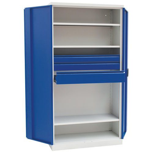 | Productnaam | Hoge werkplaatskast Magic, Max. belasting: 250 kg, Materiaal: Staal, Totale hoogte: 1950 mm, Aantal laden: 3 |