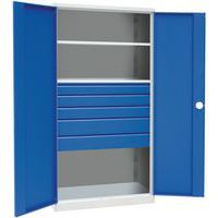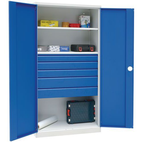 | Productnaam | Hoge werkplaatskast Magic, Max. belasting: 250 kg, Materiaal: Staal, Totale hoogte: 1950 mm, Aantal laden: 5 |