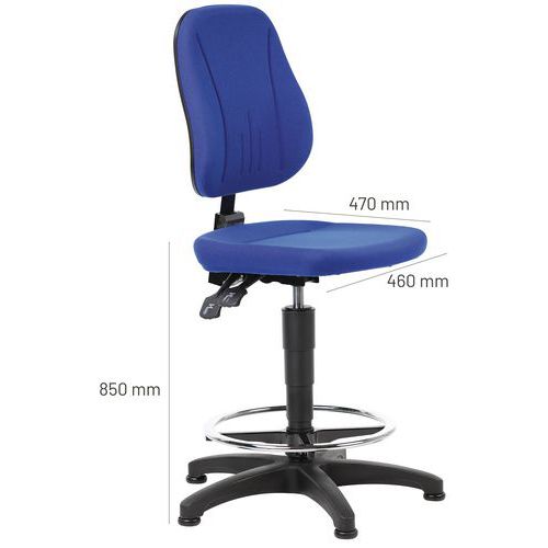 | Productnaam | Hoge werkplaatsstoel Bimos Unitec, Type voet: Stoeldoppen, Zitting materiaal: Stof, Stoel model: Hoog |