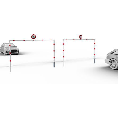 - Hoogtebegrenzer met 2 steunpalen in beton is ontworpen om de toegang van voertuigen effectief te regelen op basis van hun grootte.