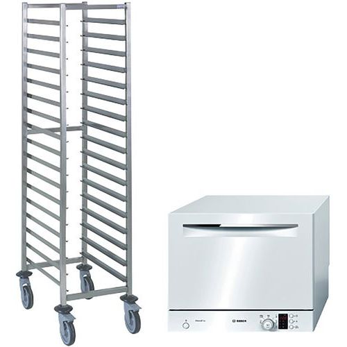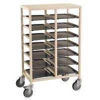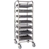 - Aan de wand te bevestigen voor ruimtebesparing. Opgevouwen is de diepte slechts 50 mm. 10 niveaus met tussenruimten van 90 mm. Maximaal toelaatbare belasting per niveau 10 kg. Te gebruiken voor platen of roosters 600 x 400 en GN1/1. Zeer robuuste constructie met dragers die in 2 standen (open en gesloten) vergrendelbaar zijn. Rvs.