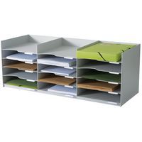 Sorteerrek horizontaal, Aantal vakken: 15, Nuttige hoogte vak: 5.6 cm, Kleur: Grijs, Totale breedte: 85.70 cm Sorteerrek horizontaal, Aantal vakken: 15, Nuttige hoogte vak: 5.6 cm, Kleur: Grijs, Totale breedte: 85.70 cm