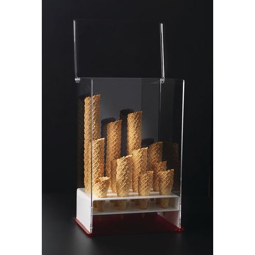 | Productnaam | Houder verticaal voor ijshoorn, Materiaal: Acryl, Breedte: 12.5 cm, Lengte: 105 cm, Hoogte: 49.3 cm |