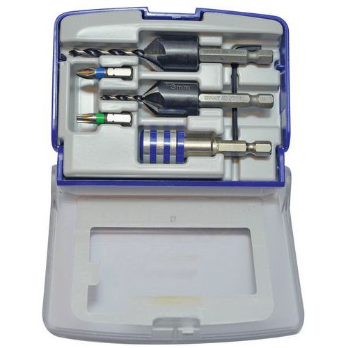 | Productnaam | Houtboren 3-puntsfrees 90° Quick Change, Aantal stuks: 5, Materiaal: Staal, Type steun: Kunststof |