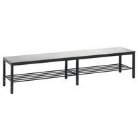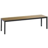 Eenvoudige garderobebank met stevige constructie, met of zonder schoenenrek, afhankelijk van het model. Fraaie afwerking met massief hout: zitting van HPL, zeer vochtbestendig. Bank met poten met steldoppen, perfect in hoogte verstelbaar (10 mm). Stalen buisconstructie, doorsnede 30 x 30 mm. Zitting met HPL-bekleding, dikte 13 mm. Model met schoenenrek: frame door elektrolyse verzinkt. Gemaakt in Duitsland