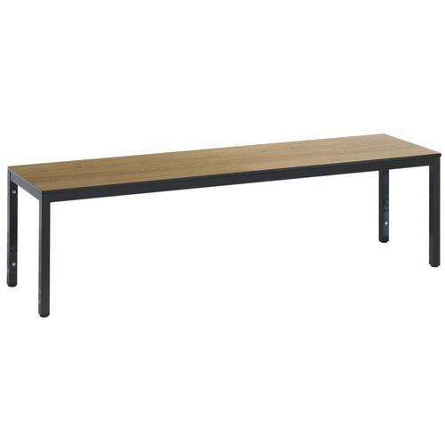 Eenvoudige garderobebank met stevige constructie, met of zonder schoenenrek, afhankelijk van het model. Fraaie afwerking met massief hout: zitting van HPL, zeer vochtbestendig. Bank met poten met steldoppen, perfect in hoogte verstelbaar (10 mm). Stalen buisconstructie, doorsnede 30 x 30 mm. Zitting met HPL-bekleding, dikte 13 mm. Model met schoenenrek: frame door elektrolyse verzinkt.