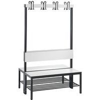 Houten bank met kledinghaken, dubbelzijdig, met rugleuning Basic plus - met en zonder rooster - CP