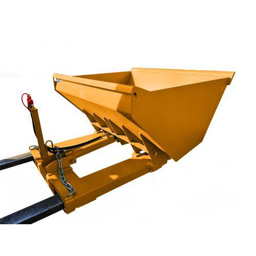 GVT Essentiel, hydraulisch los inzetbakje voor het van de grond oppakken van granen, spaanders, meststoffen, zand of andere, schuine snijrand, hydraulische verbinding voor aan de wagen, gemonteerd op een houder, bevestigingsketting op het schutbord.