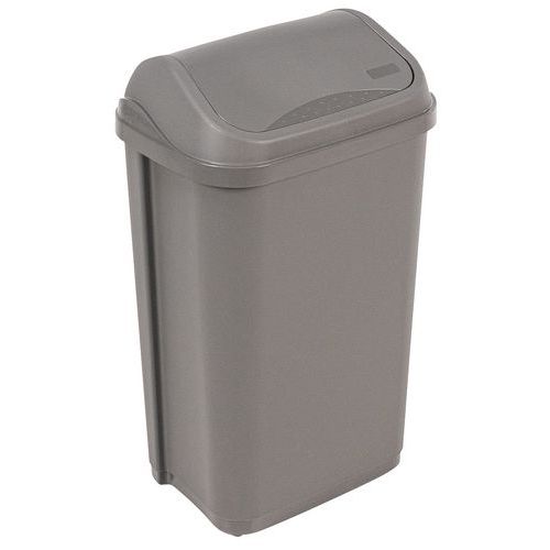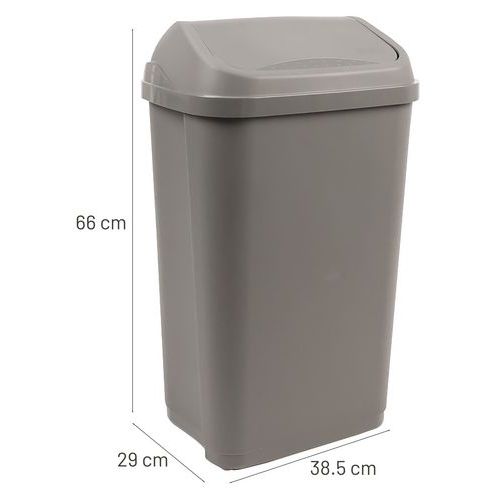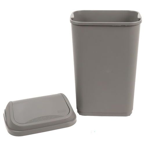 | Productnaam | Hygiënische afvalbak met tuimeldeksel 50 l, Totale inhoud: 50 L, Opening: Kantelbaar, Materiaal: Kunststof |