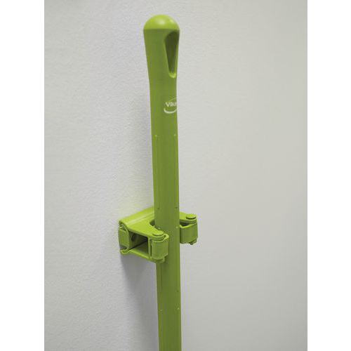 De Module Clip Grip is ontworpen voor het ophangen van schoonmaakgereedschap dat is voorzien van een gat voor wandbevestiging. Hij wordt van links of rechts op de basis/tussenstuk geschoven. De Module Clip Grip is geschikt voor gereedschap met een diameter van 28 tot 33 mm. Praktische houder, eenvoudig te demonteren voor reinigen of vervangen. Gemaakt in de EU