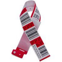 - Om het polsbandje te verwijderen, moet het worden doorgeknipt, waardoor het niet kan worden overgedragen of omgewisseld van de ene persoon naar de andere.