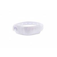 - Polsbandje PVC voor eenmalig gebruik met beveiligde kunststof sluiting met drukknoop.