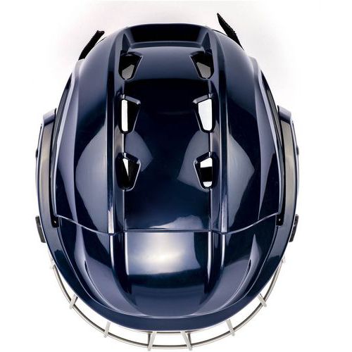 Hockeyhelm met stalen gaas en dichte schuimvulling voor veilig gebruik.